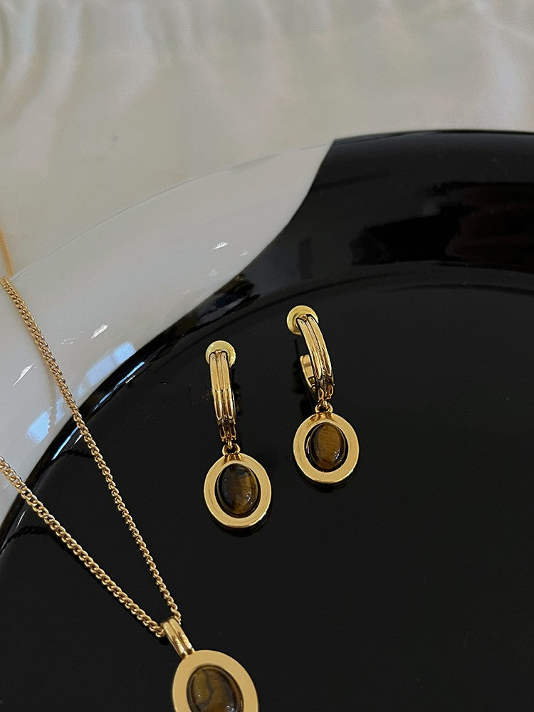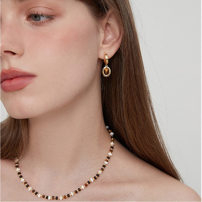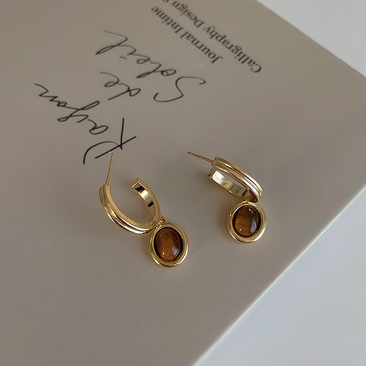 Cat's eye stone earrings, elegant and vintage. Both colors are suitable for everyday matching.