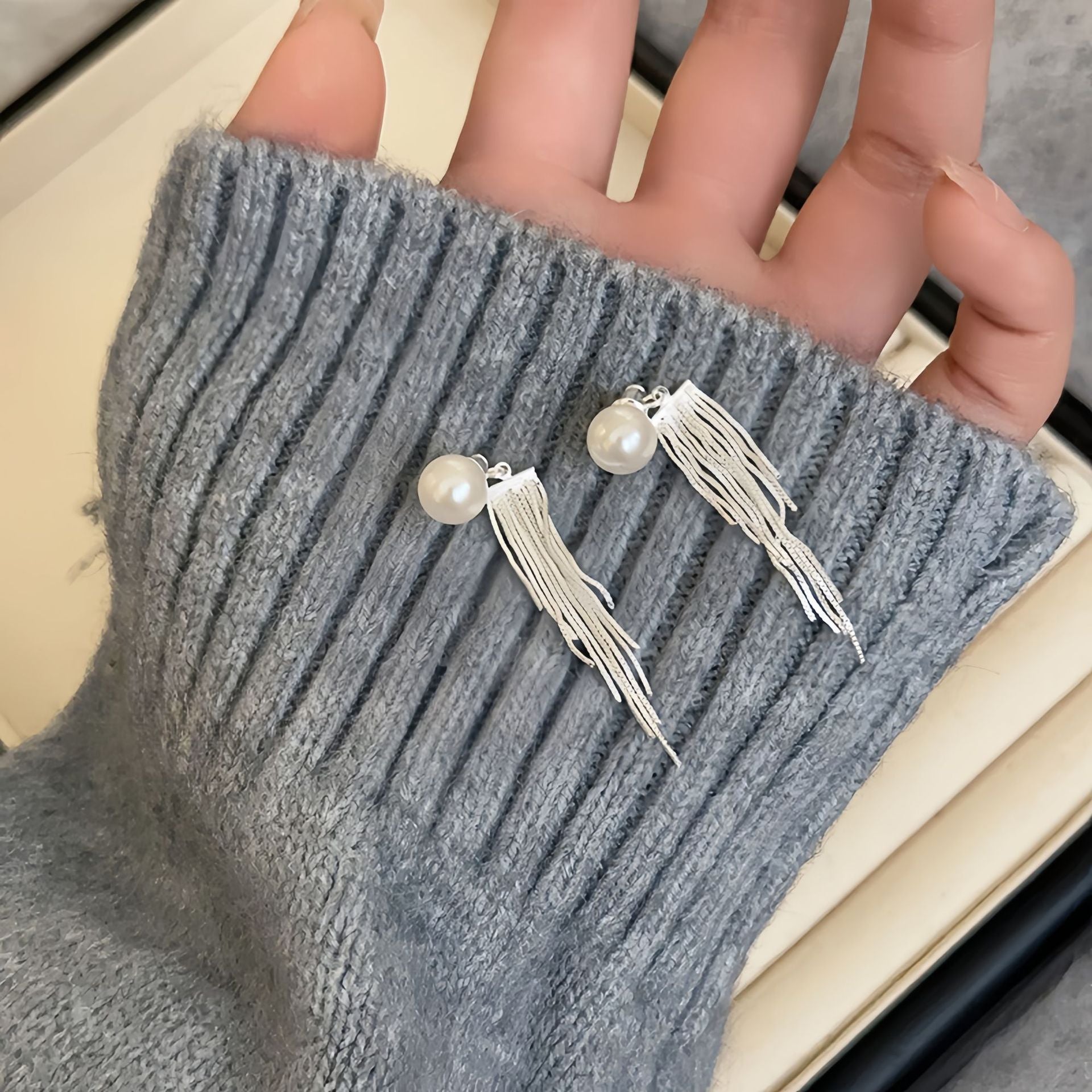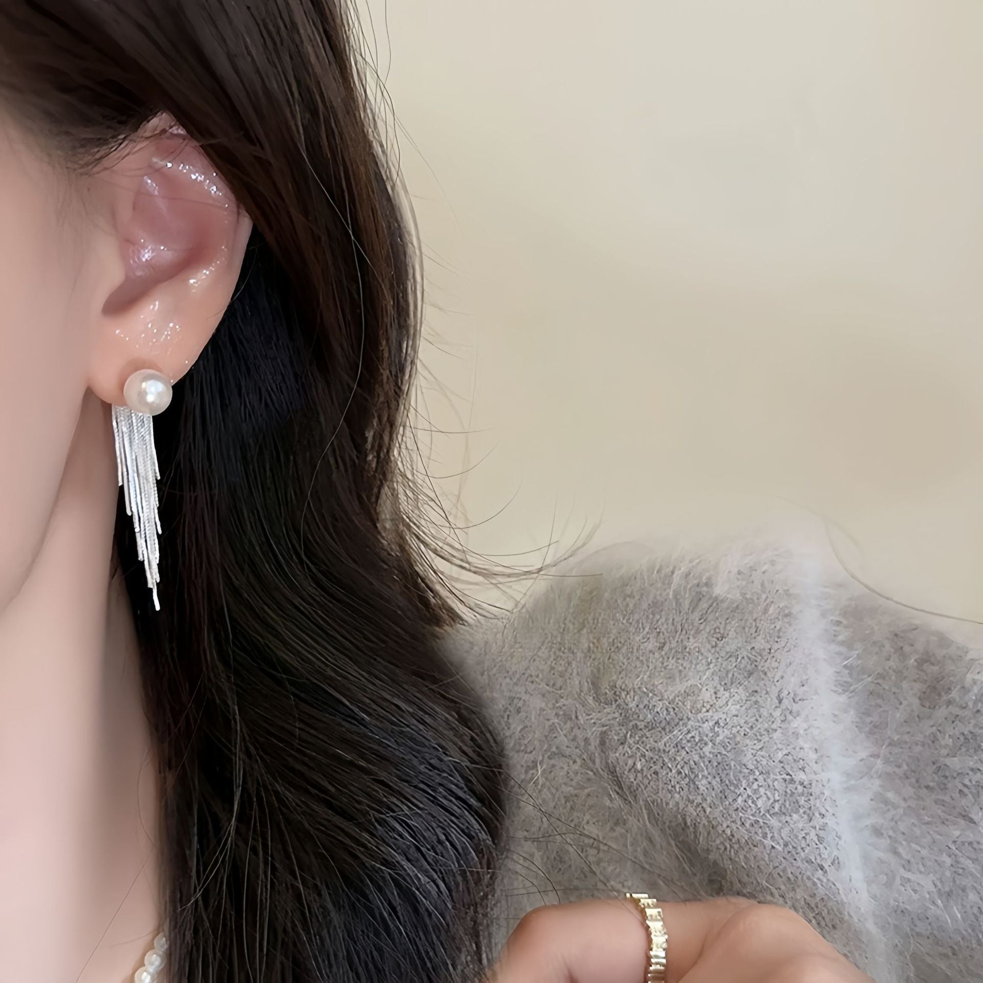 These pearl mini silver tassel earrings are suitable for a variety of occasions, adding a chic and stylish touch to the wearer, whether it is for everyday wear or special occasions. It focuses on the design details of the tassels and pearls while displaying an elegance and movement that makes it a highly sought-after fashion accessory.