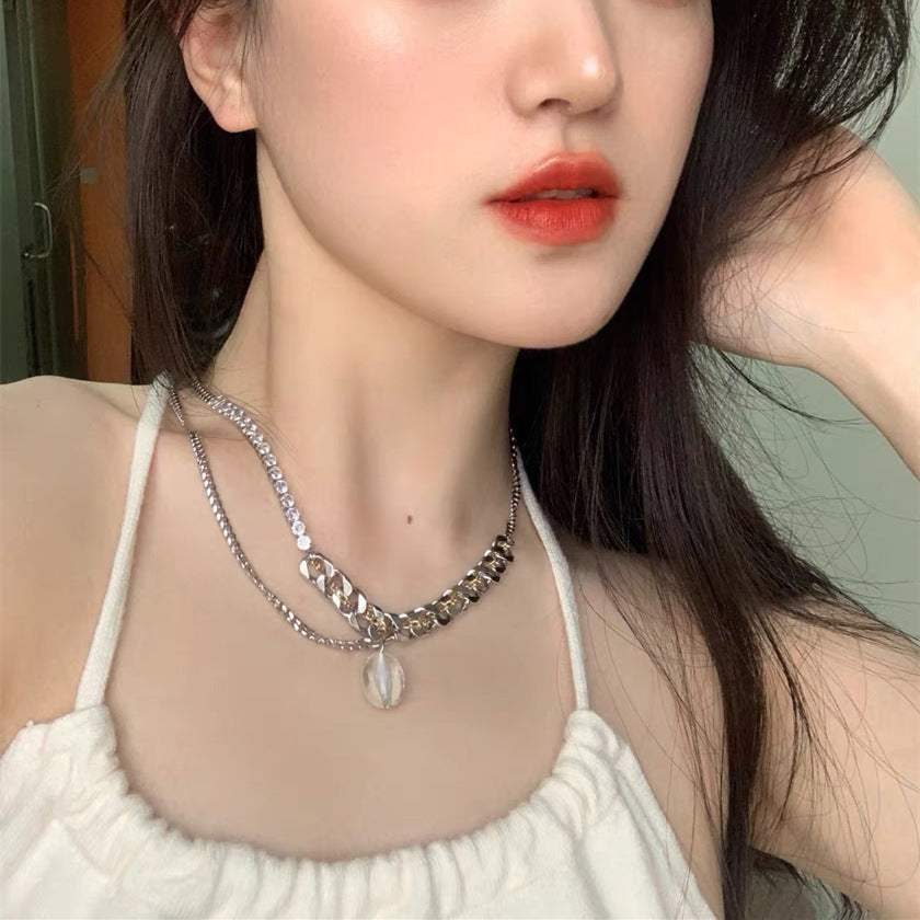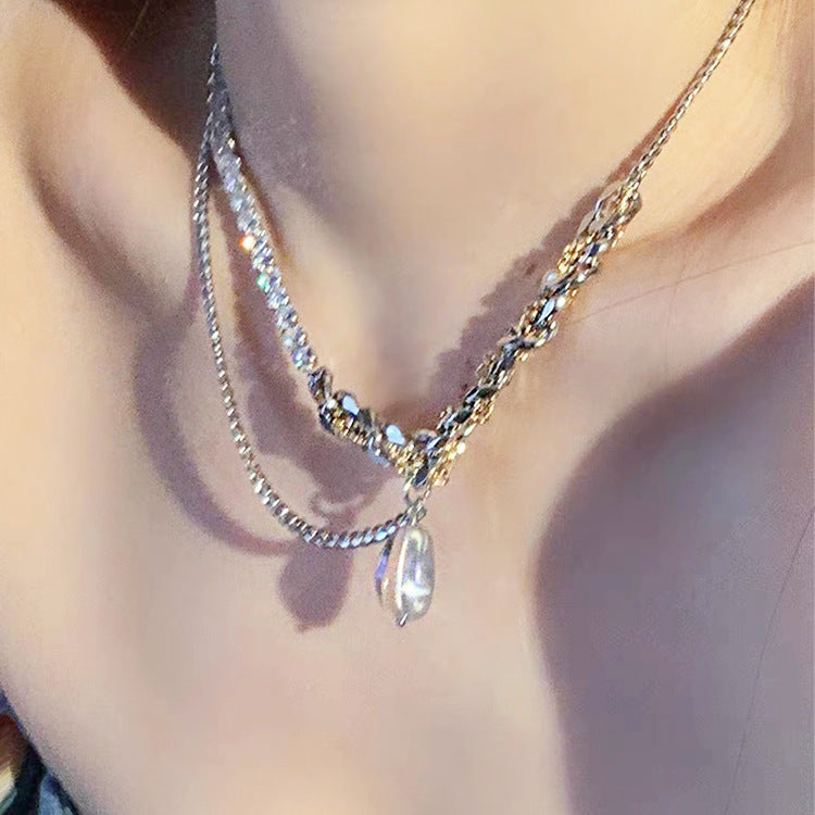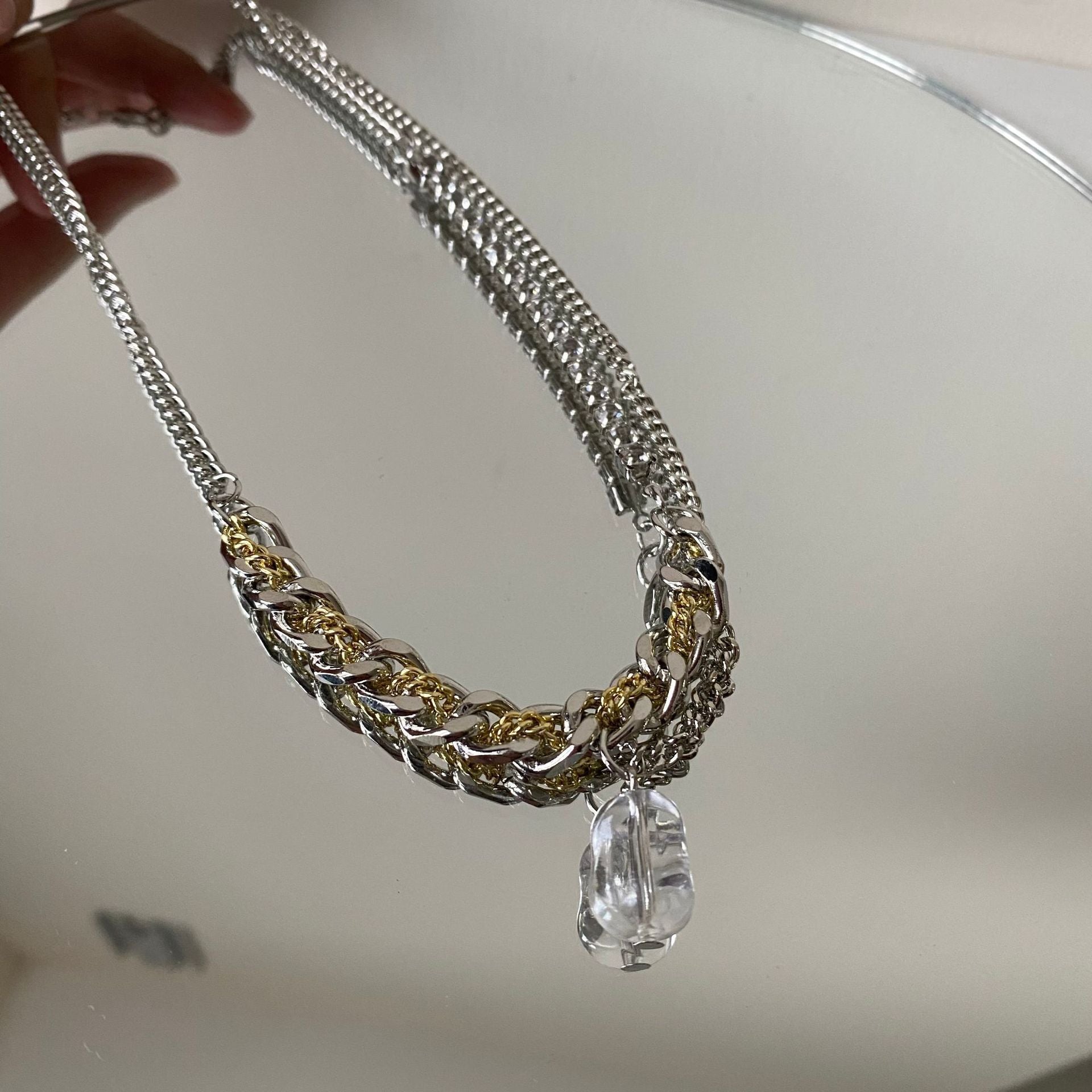 Designer personalized design multi-layered necklace intertwined, the pendant is natural white crystal, beautiful to wear alone or stacked to create a unique look, the choice is yours.