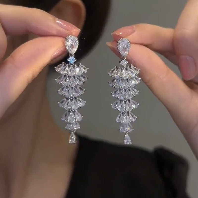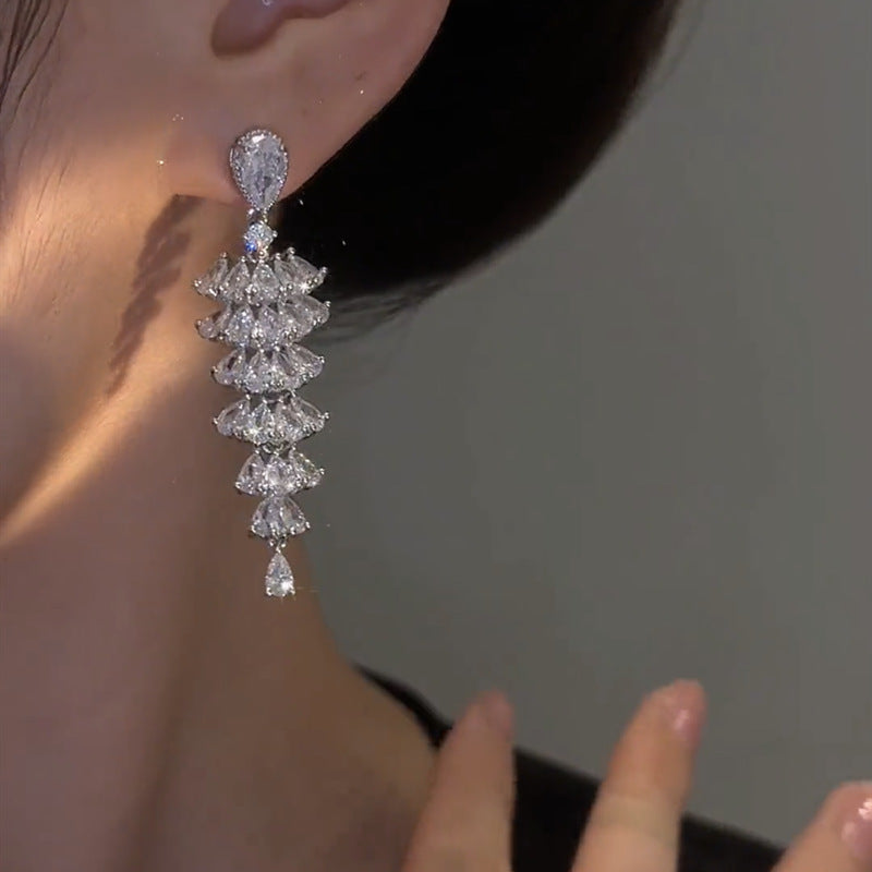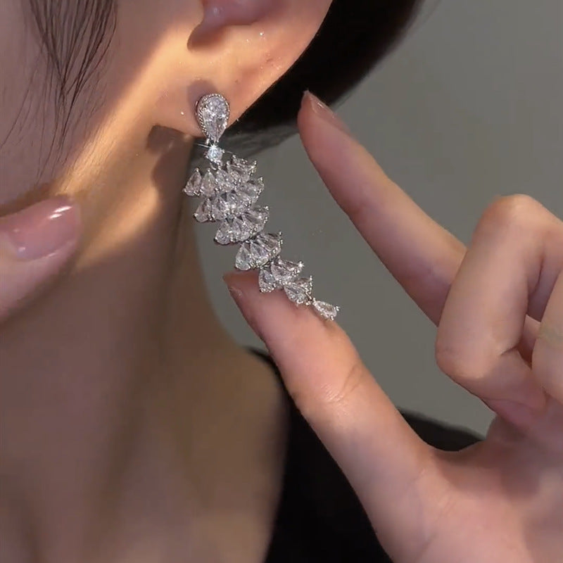 Zirconia Fan-Shaped Skirt Earrings are a stylish jewelry accessory with the following features: