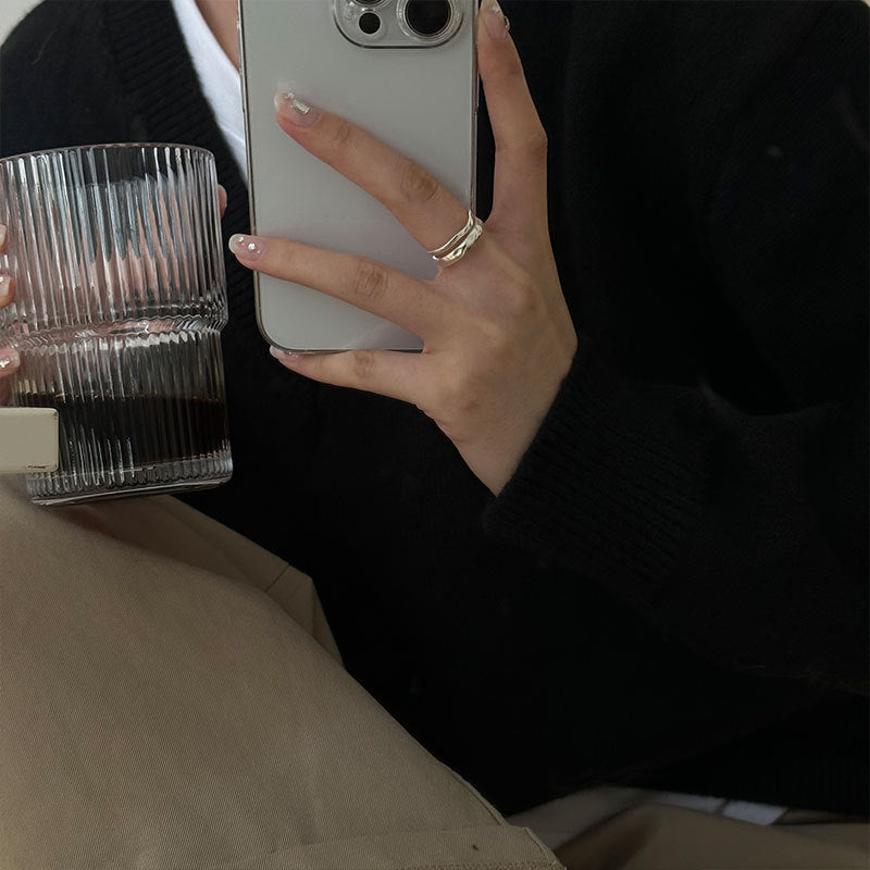 The silver gleam adds a touch of modernity and elegance to the entire ring. The ring's irregular contour imparts a distinctive artistic ambiance, making it both eye-catching and comfortable on the finger. Its design inspiration derives from the waves of nature, presenting smooth and graceful lines that also reveal the designer's keen perception and creativity regarding the beauty of the natural world.