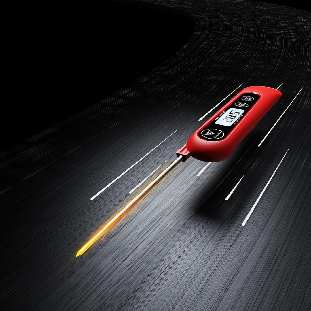 Cook your food to perfection with this digital meat thermometer. It delivers instant readings in just 2-3 seconds and ensures accurate temperature measurement for meat, BBQ, grilling, baking, and even milk or beer. Designed with a foldable stainless steel probe and a backlit screen, it's perfect for both indoor and outdoor cooking, day or night.